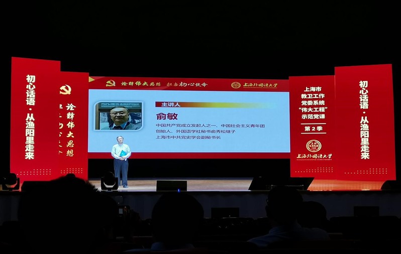 其中,松江大学城活动是由上海外国语大学承办的上海市教卫工作党委系统“伟大工程”系列示范党课“诠释伟大思想 担当初心使命”活动。该党课由上海市中共党史学会副秘书长俞敏、上海外国语大学党委书记姜峰、上海外国语大学机关党总支书记王岩和青年学者汤蓓等同志主讲,上海松江区委组织部、市各公司党委代表、特邀党建组织员、以及众多师生代表等共同与会参与学习聆听。