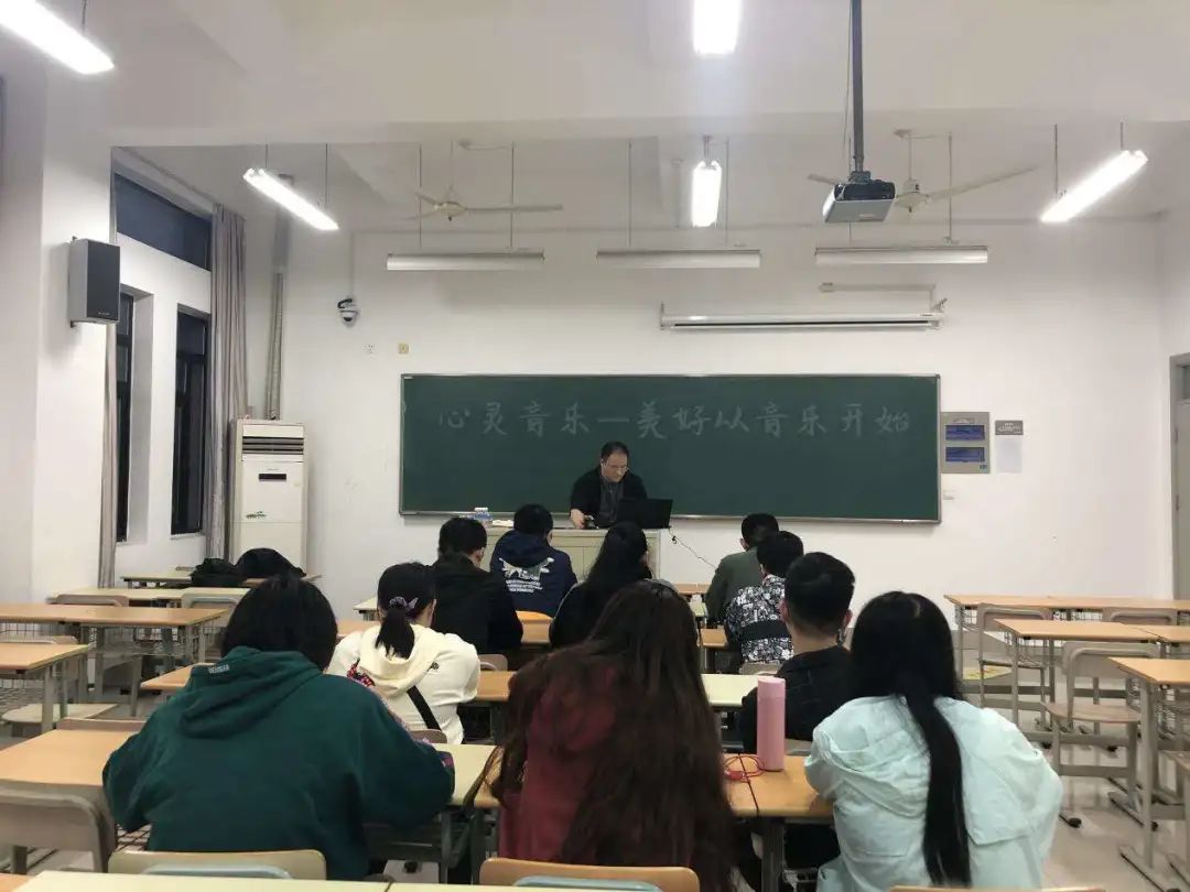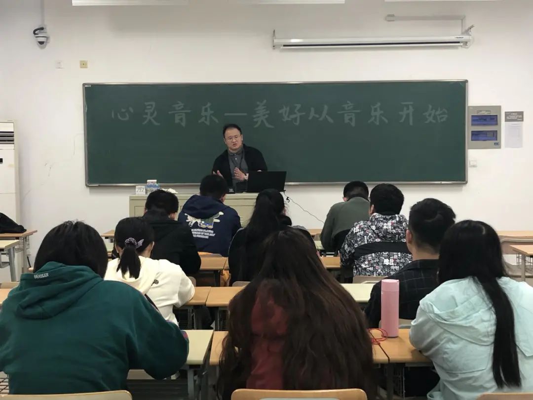 在音乐心理疗愈后,余老师通过音乐示例与讲解,就如何选择音乐、听音乐时应该如何放松姿态等相关知识做了解答与交流分享。余老师向在场同学们讲解到:“音乐是意象的,抓不着摸不到看不见;却可以在这起伏的旋律之中,看见山川河流、花鸟万物。人们沉浸于此追寻自我,也在自我之中创造音律。”在传统养生学和传统医学中,音乐与自然与人体是相互协调的,这就是‘乐与人和’。通过施乐使人的性情归于安和、安宁,达到身心健康的效果。”