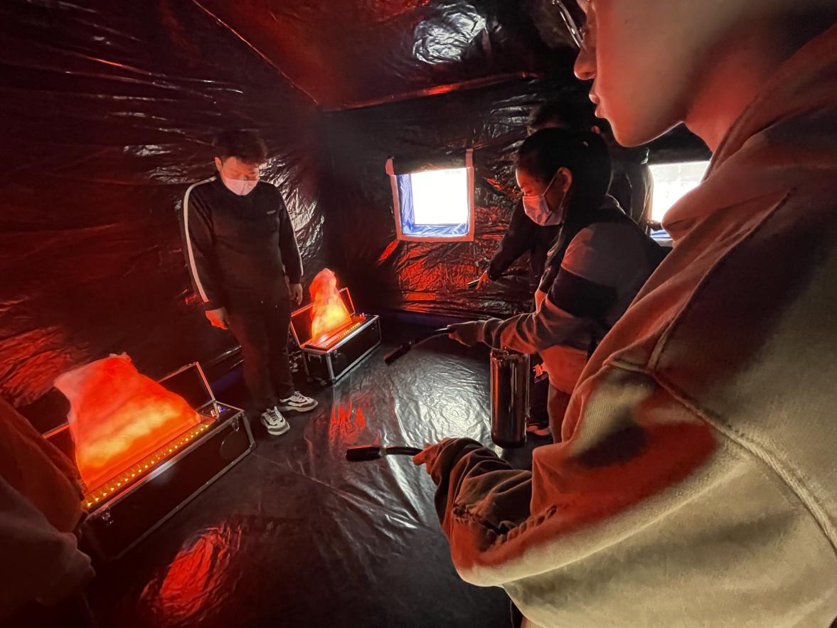 在消防演练现场,专业消防人员为在场同学介绍有关消防安全常识、对灭火器分类、灭火器材使用方法和烟雾逃生技巧进行了细致的讲解,在现场为大家示范各类消防器材的正确使用方法。随后,由同学们分批次进行模拟现场演练,现场同学们按照专业人员所教方法,逐一进行了实际操作,圆满完成了消防演练任务,切实从应对火灾的实战需要出发,大大提升了同学们应对火情的处置、自救和互救等方面的能力。