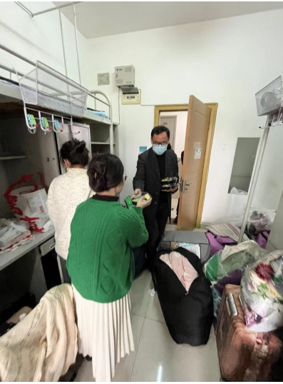 校园准封闭管理前夕,需对36宿的同学进行回迁,项军深入一线,全面了解员工需求,和员工条线共同完成了回迁同学的思想排摸和面临困难的工作处理,在规定的时间节点前顺利完成回迁任务。