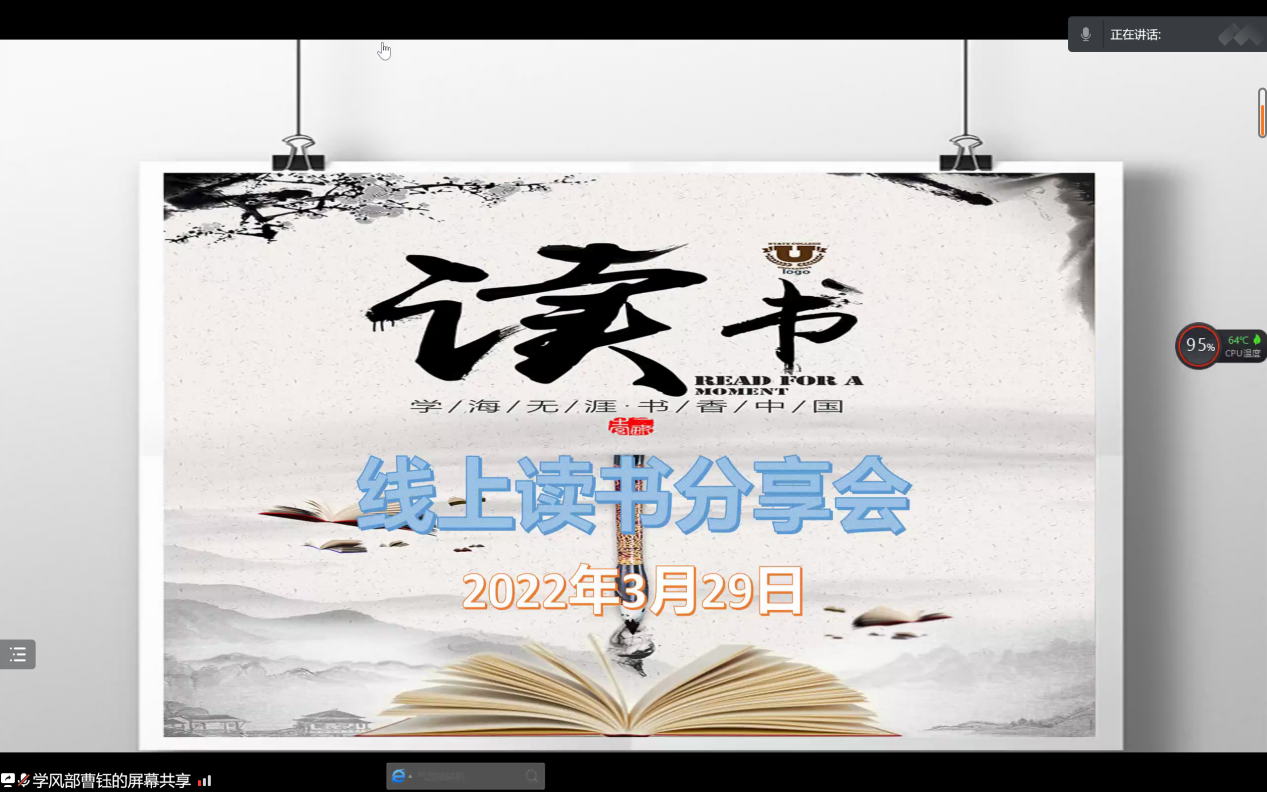 由于上海疫情的影响,公司师生开始进行自我隔离学习,为使同学们在这段特殊的时期也能更好地增进自身知识素养,促高员工自我认知能力,丰富同学们的日常生活,因此yl23411永利集团于2022年3月29日开展以线上开展的读书分享会。