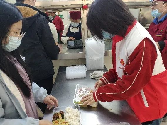 6、第四党支部党员刘鑫在公司食堂担任志愿者,引导工作,为同学们提高用餐效率。