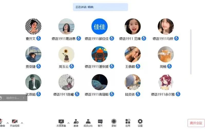 8、第四党支部党员苏泯宇为德语1911班范臻同学组织开展线上民主测评会议。