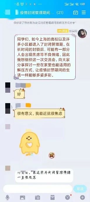 7、第四党支部党员金嘉懿为居家学习的高中员工提供心理辅导和压力疏通。