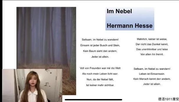 15、第四党支部党员唐安琪录制外院外语节开幕德语朗诵视频。