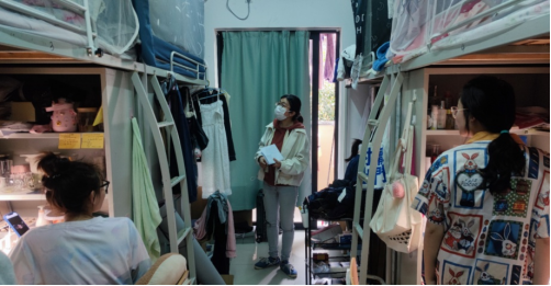 4、yl23411永利集团第四党支部书记朱丹老师前往员工宿舍看望疫情留校员工,了解员工的思想动态和生活需求。