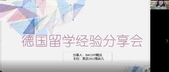 9.、第四党支部党员高依凡为公司学子组织举办线上德国留学经验分享会。
