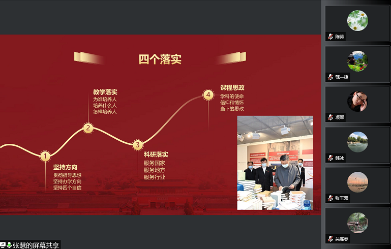 在学习过程中,二级中心组成员将理论学习与岗位实践相结合,分别在党建工作、课程思政、科研能力提升、管理能力提升等方面展开交流;教职工理论学习中,教师重点讨论了“经师”和“人师”的统一;组织生活会中,重点学习了“世界怎么了”、“人类向何处去”的时代之题和青年的使命。
