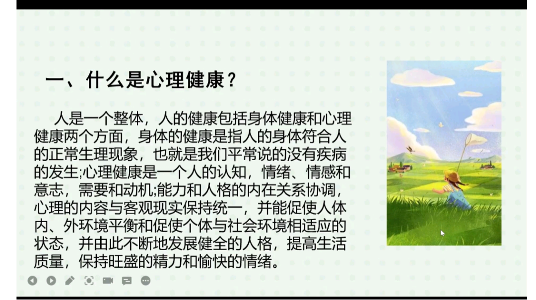 介绍完心理健康,主持人也引出了关于情绪容器的话题,通过一系列故事的分享,帮助大家正确认识自己,借此引出了摆脱忧郁情绪的方法,呼吁大家加强意志锻炼,保持乐观的“正性情绪”,诚服于自己的生活体验,别被不重要的话左右。