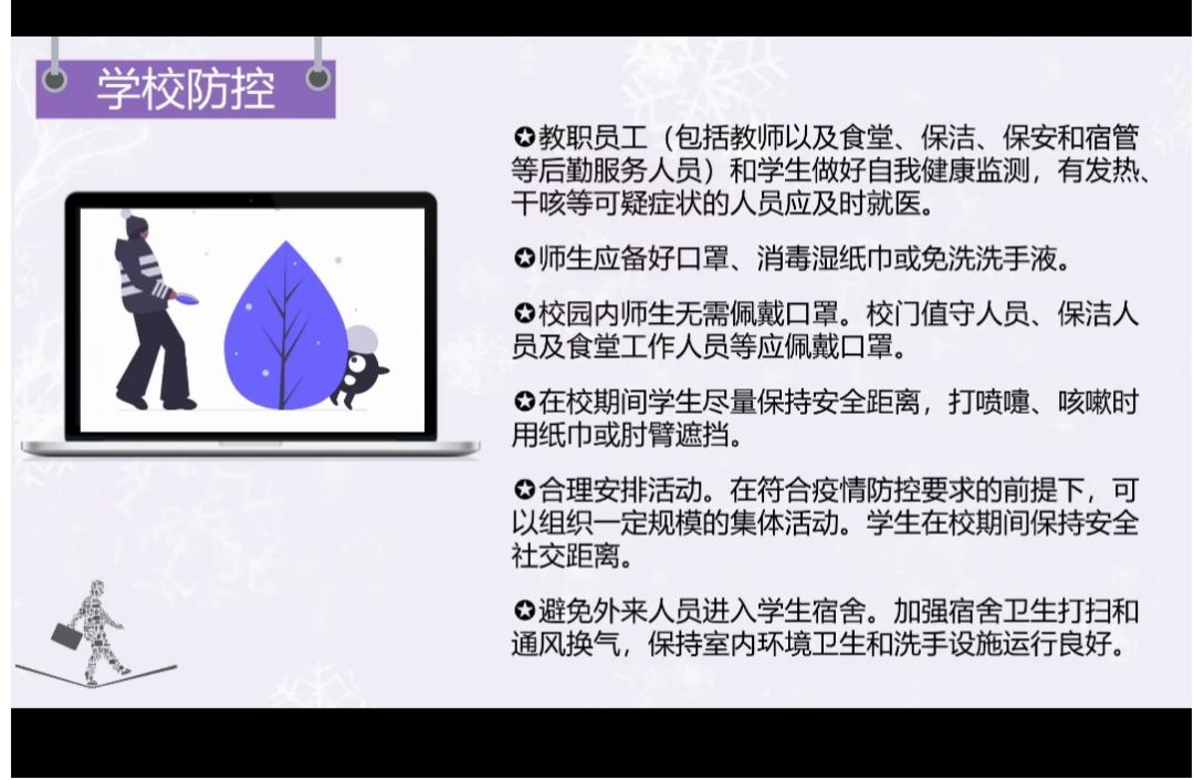 活动开始,主持人科普了关于卫生活动的相关知识,并且着重提出老员工要时刻关注环保,我们的工作和学习都与环境卫生息息相关。本次活动分为四个部分,从居家生活和公司生活谈起,日常防控防控是重中之重,外出防控知识更是让我们安心享受生活的关键,防控的三要三不要也为我们更好地做好防护提供了方向。