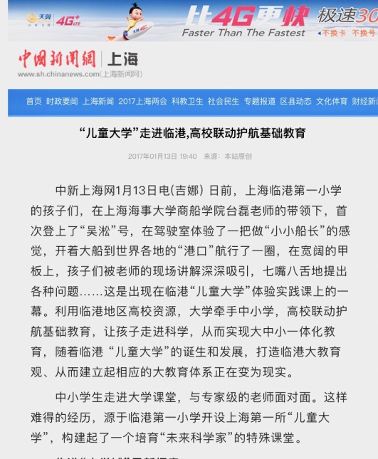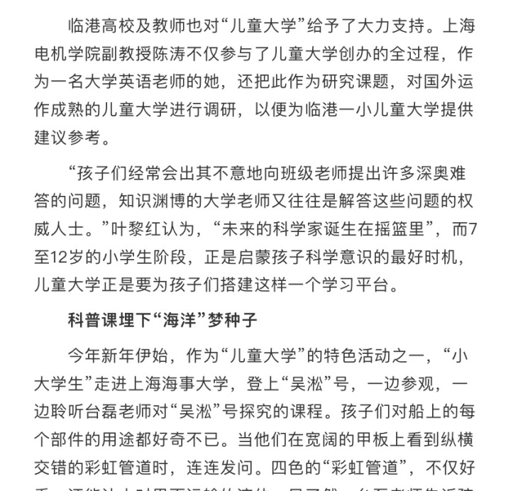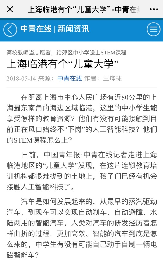 中青在线2018年关于“儿童大学”的报道 上海教育新闻网2018年关于“儿童大学”的报道