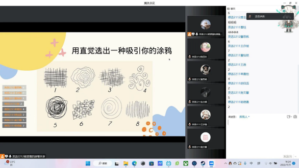 第二个环节是心理小测试:用直觉选出涂鸦。每个涂鸦对应一个心理状态,同学们积极踊跃参加小测试,活动氛围就此达到了高潮。