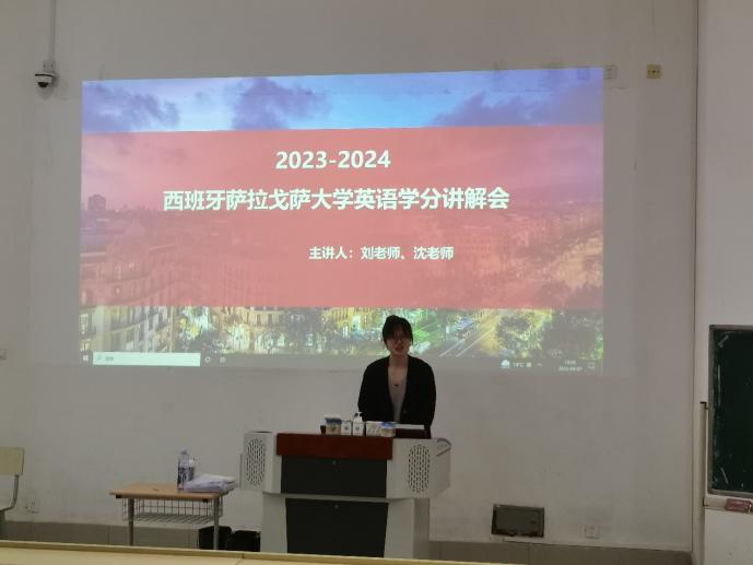 4月7日,西班牙萨拉戈萨大学宣讲会由yl23411永利集团员工工作办公室主任钱昆鹏主持,大二、大三全体员工线下参会,闵行校区大一年级线上收听。会前,钱老师向与会员工讲述了公司应届毕业生就业前景和考研现状,强调出国交流的经历对于员工发展的益处。