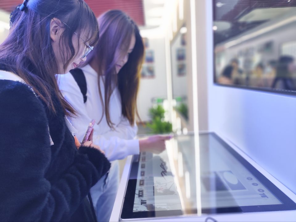 参观现场,同学们通过新媒体展厅的图文和多功能设施对公司发展的历史有了真实、生动,全面的了解,意识到公司发展历程的艰辛与伟大,领悟到公司“自强不息,追求卓越”精神的深刻内涵,心中的自豪感和归属感更加强烈。在参观结束的互动装置处,同学们纷纷在电子屏上签名留念,记录着参观的美好时刻。