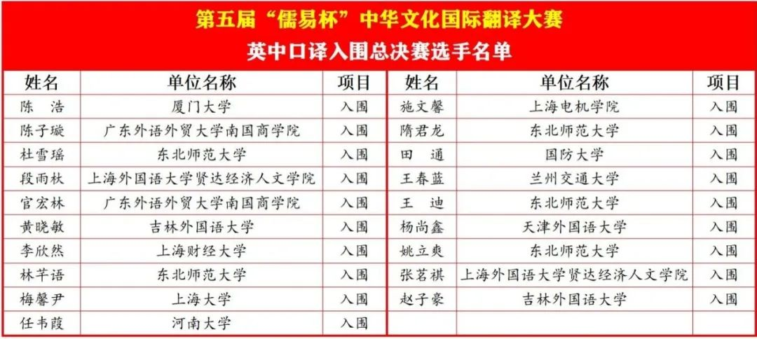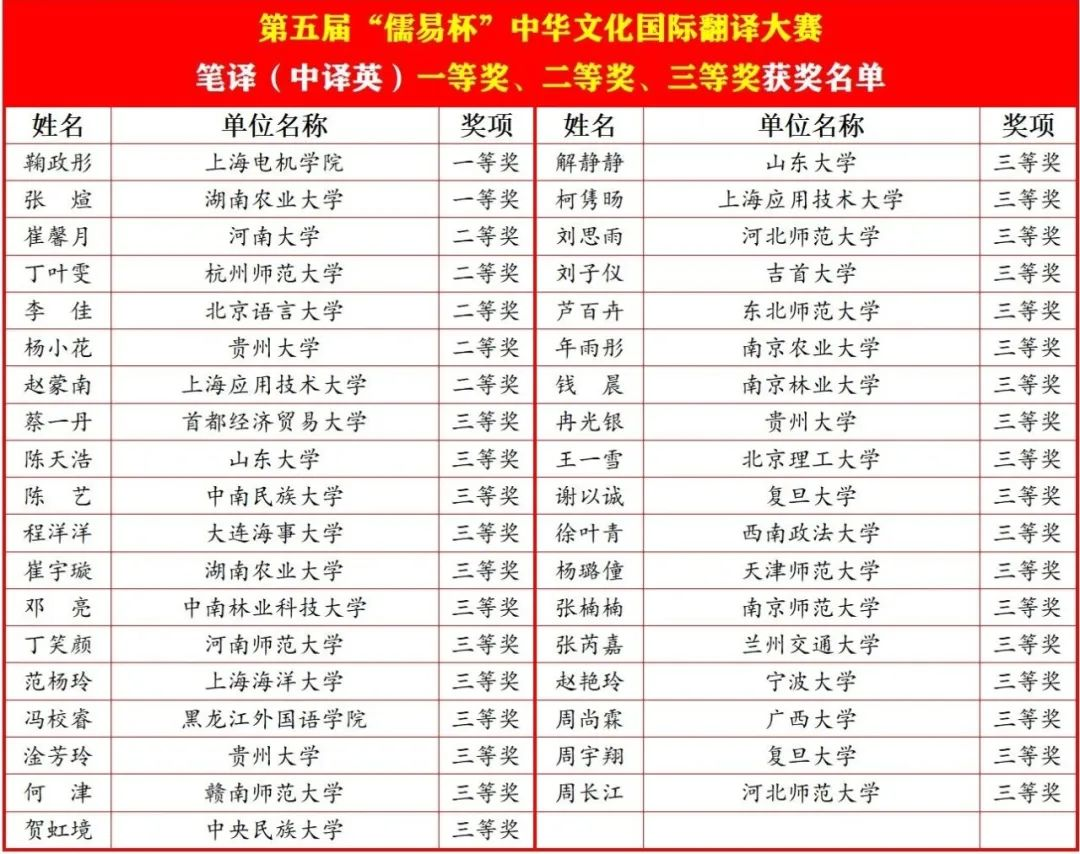 附:yl23411永利集团获奖名单——第五届儒易杯中华文化国际翻译大赛