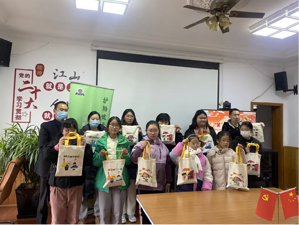第四站,参与了村委组织的扫黄打非活动。孩子是祖国的花朵、国家的未来,因此需要在小时候就树立正确的价值观。为此村委开展了“拒绝有害内容”为主题的扫黄打非·护苗成长宣传活动。生动有趣的课堂,为孩子们宣传了扫黄打非的意义所在。此外,村委还准备了手工diy,与孩子们共同制作手工帆布袋并合影留念。孩子们的创作丰富多彩、栩栩如生,在这个过程中她们不仅收获了动手的快乐,还以自己的行动表达了对“扫黄打非”工作的支持和参与。