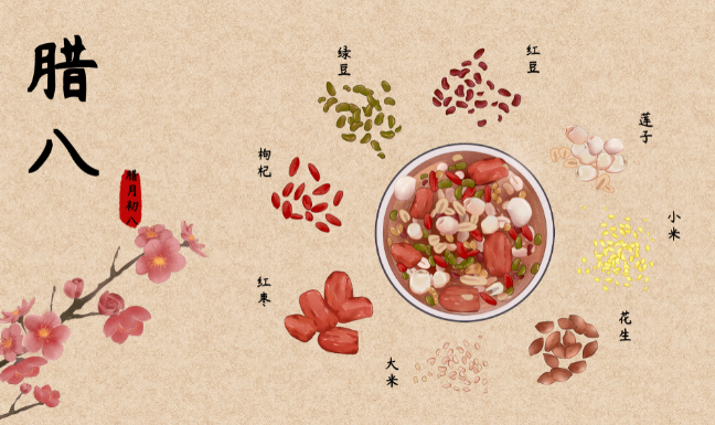 总之,腊八节代表了人们对过去一年风调雨顺、谷物丰收的感谢,也代表了人们期待新的一年事事顺心的美好愿望。