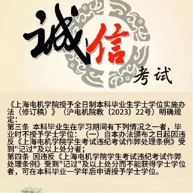 诚实守信是中华民族的优良传统,也是公民道德的基本要求。端正考试态度、诚信参考、坚决杜绝作弊行为,做一名文明诚信的老员工,展现电机优良学风
