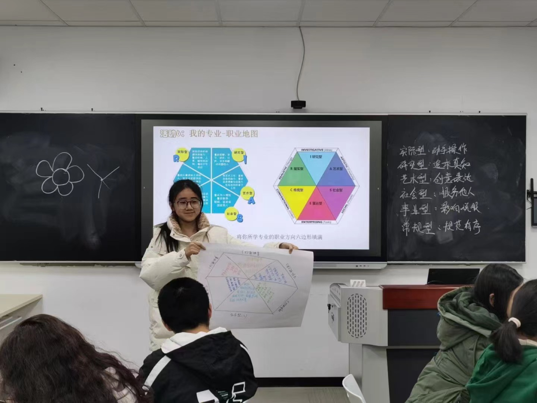 1、国家重点扶持的行业领域有哪些?新兴的职业有哪些?与自己专业相关的热门职业有哪些?自己感兴趣的职业有哪些具体要求,待遇如何?在自我探索的基础上所形成的职业库,还不能直接作为我们的目标职业方向,面对刚进大学的员工存在的这些困惑,本期训练营中,钱昆鹏、李玲两位老师从专业、行业、企业、职业、岗位五大维度,带领同学通过活动,小组成员从专业的核心课程、专业的未来前景、本专业研究领域等绘制“我的专业名片”,并以霍兰德职业性向六边形为工具,探索本专业对应的职业类型。通过带领同学们学习ESTO模型制作行业信息卡,如何选择适合个人的企业?通过学习PLACE模型,带领员工明晰不同性质企业的不同特点,帮助员工根据自身定位和需求,做出更合理化选择。