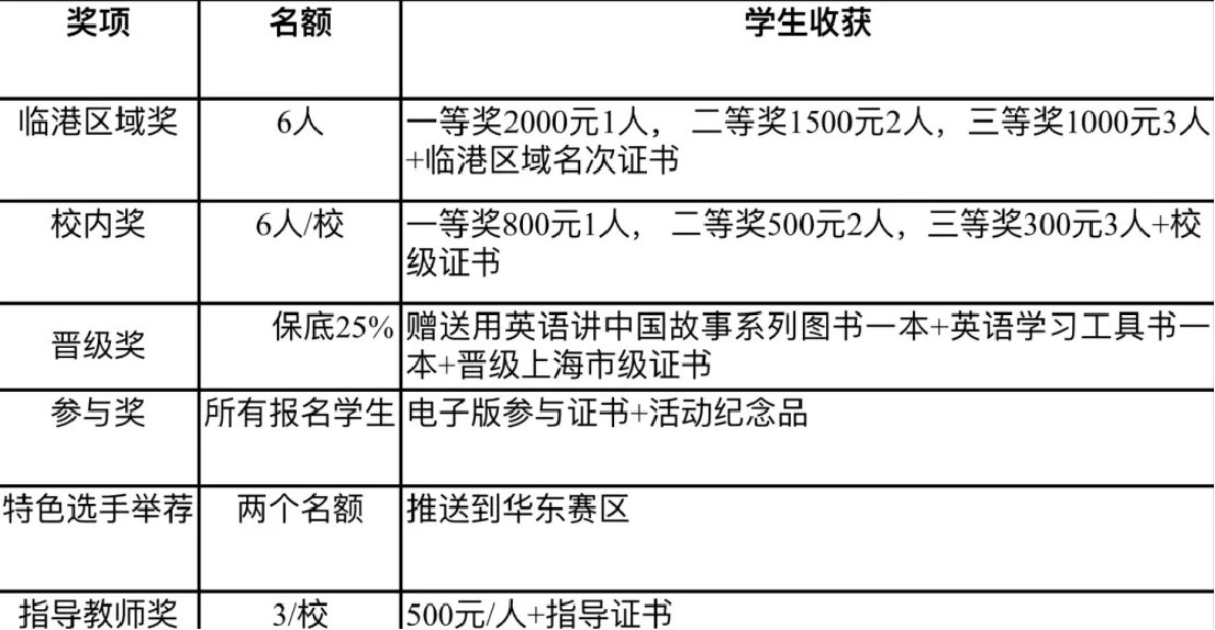 临港区域初选:综合评出校内/区域选手晋级上海市级。