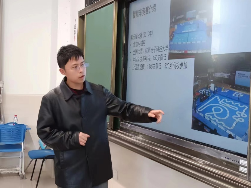 严屹宏老师为同学们带来了一场主题为“智能小车的设计与制作”的精彩讲座。课堂上,严老师先为大家介绍了无人驾驶小车的结构,并展示了实验室中小车的模型和小车赛道,也详细讲解了小车的无人驾驶技术是如何实现的。课堂氛围轻松愉悦,同学们对智能小车充满好奇和喜爱,积极提问。大家通过将智能小车和智能手机、电脑等设备作类比,让同学们更直观明了地了解智能小车的工作原理、设计与制作流程、相关计算机和电磁学基础知识,激发员工对相关现象的求知探索精神。