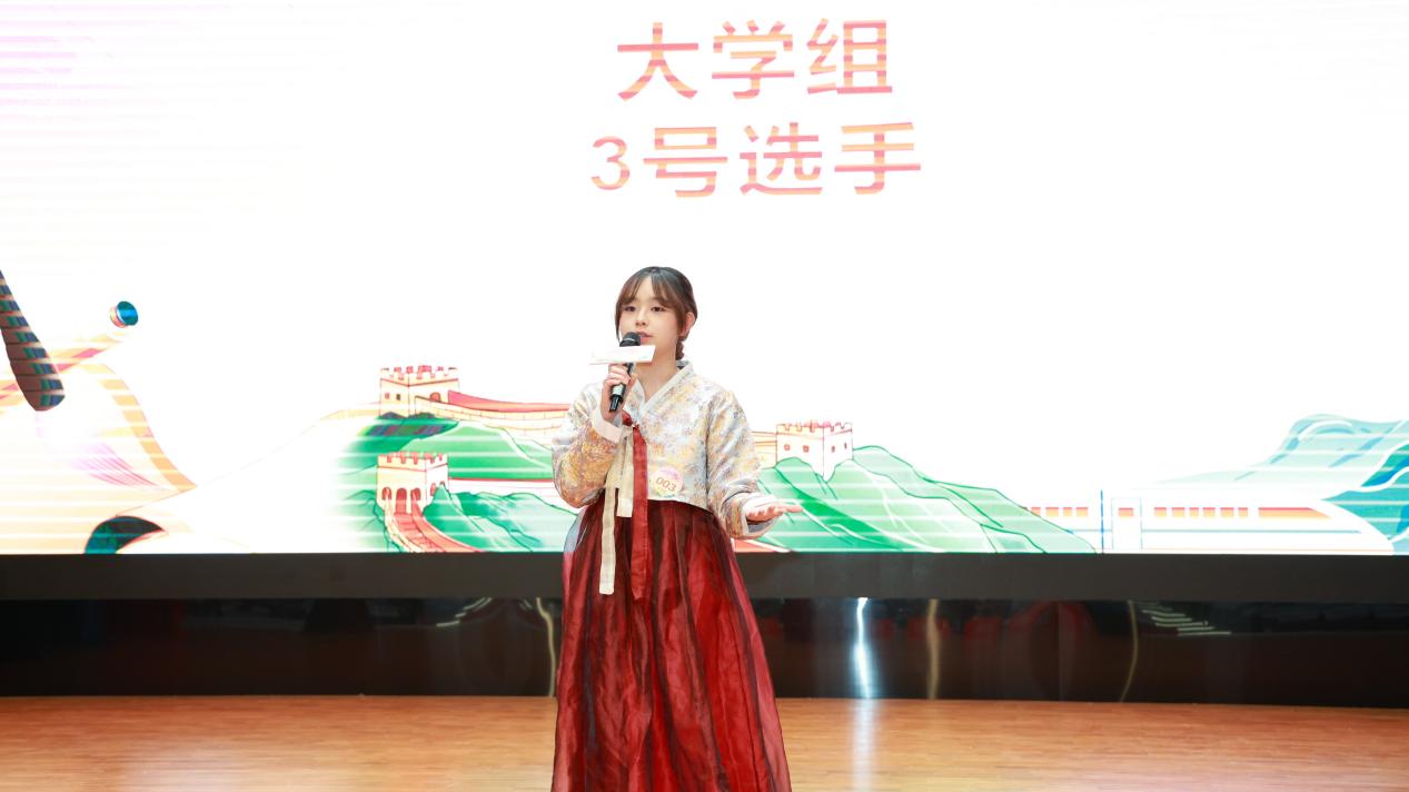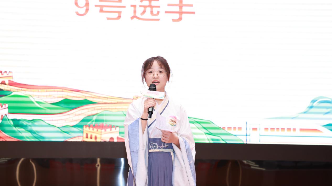 英语2211班级朱文娟同学以江西景德镇的青花瓷作为主题,为大家展示了穿越千年的淡雅韵味。她的才艺展示也与主题相契合,将东方美学的精髓展现得淋漓尽致。