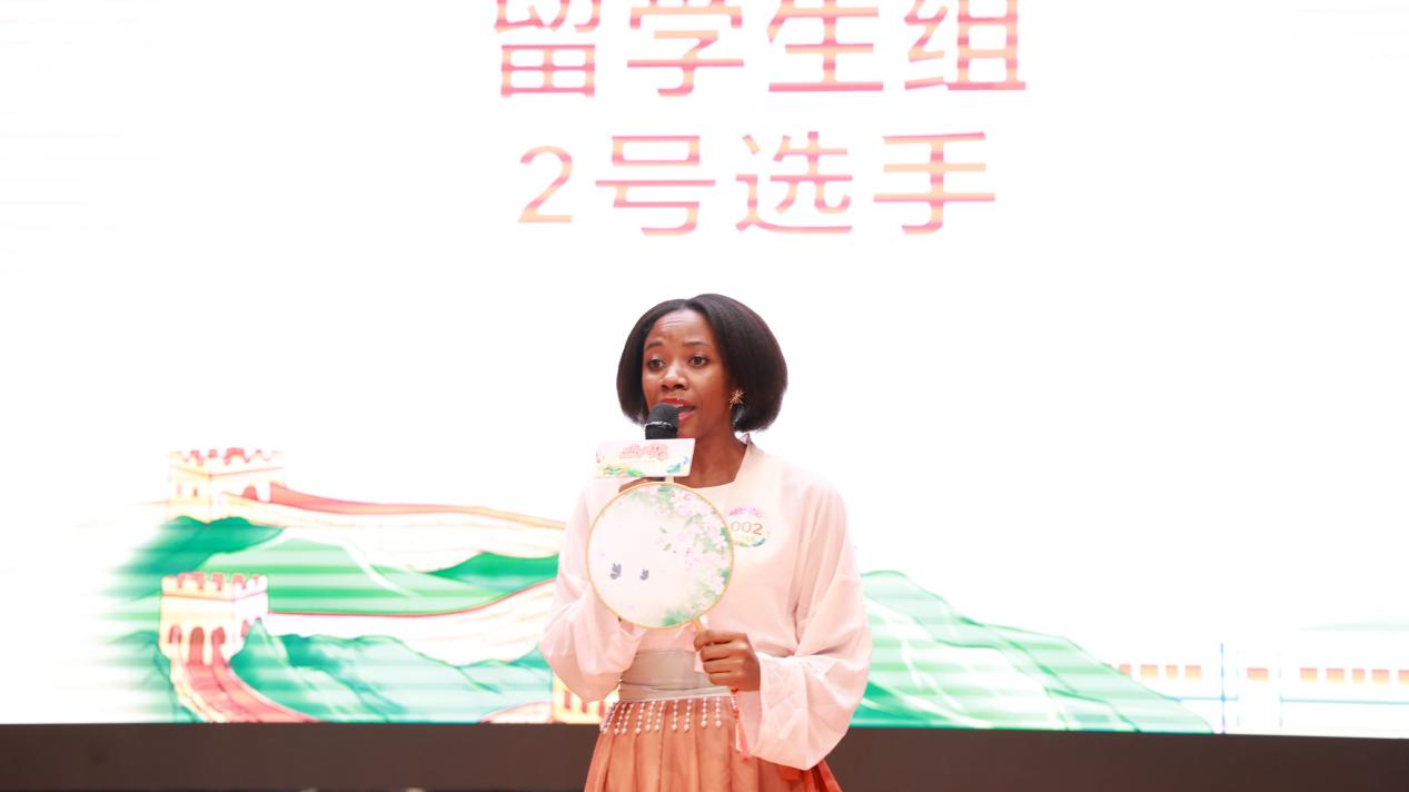 国贸2231班级职工Lorraine Ditsebe M为大家带来了我国古代神话故事——大禹治水。在中国留学期间她也深刻感受到中国人坚韧不拔的精神,这激发了她在中国学习的热情。才艺展示环节她带来了一首中国经典歌曲——《甜蜜蜜》,赢得了众多评委老师和在场观众的喝彩。