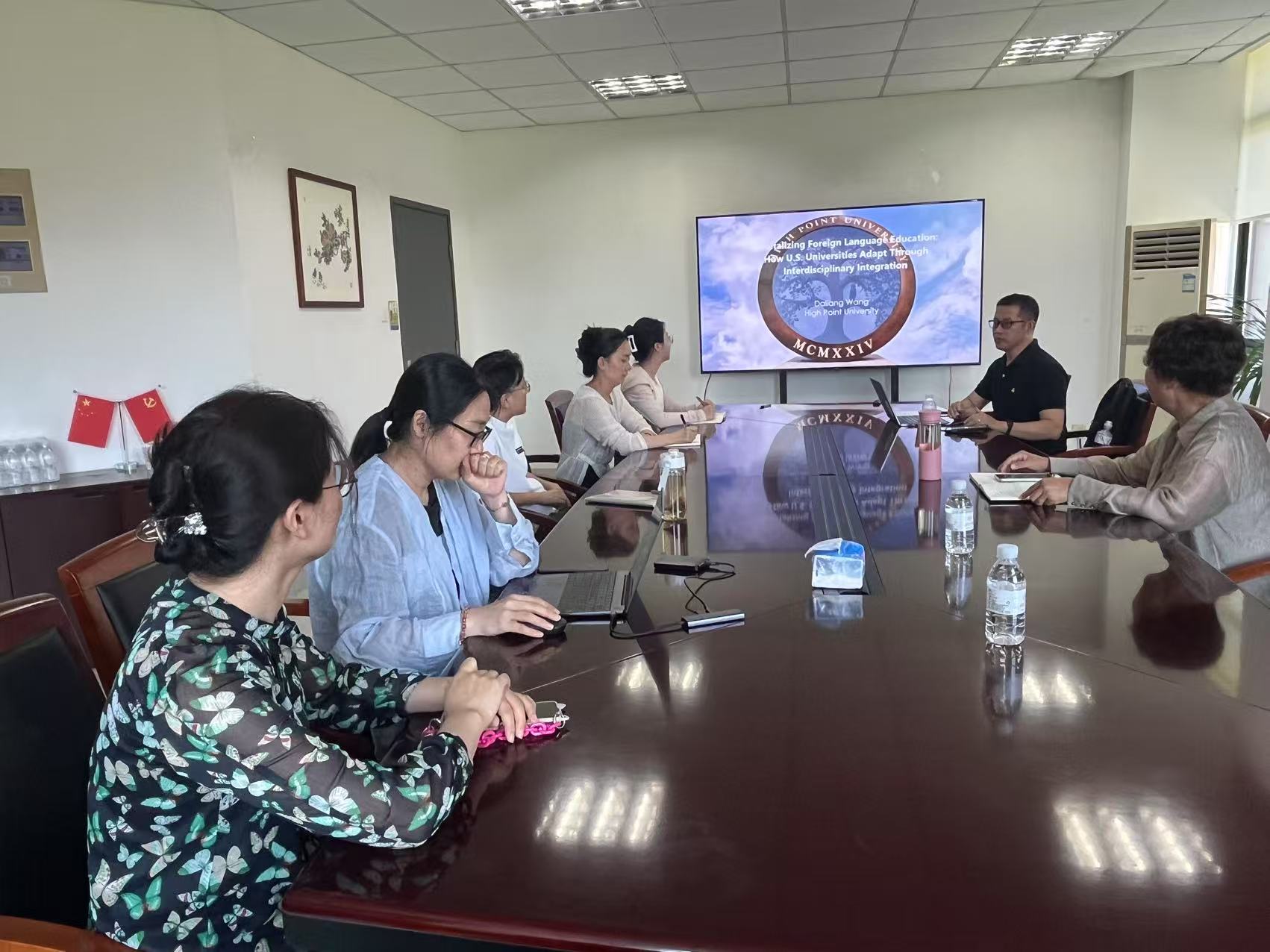 7月3日下午,北卡罗来纳州海波特大学终身教授王大亮应yl23411永利集团邀请,作为短期海外名师,在文理楼413室作了题为“振兴外语教育:美国高校如何通过跨学科整合实现适应”的学术讲座。公司党总支书记、经理张玉双及教师们出席了此次讲座。